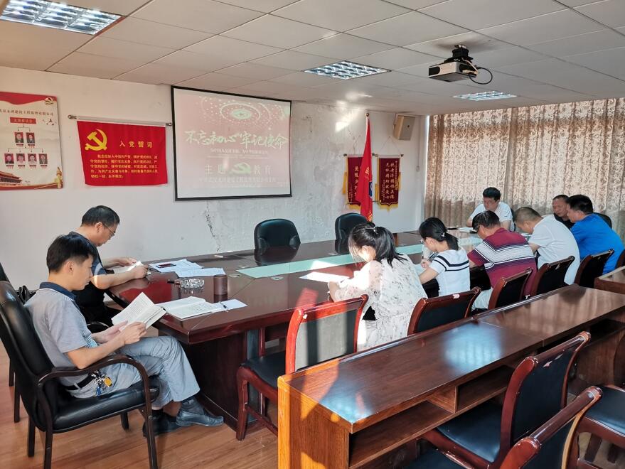 根据习近平总书记在“不忘初心、牢记使命”主题教育工作会议上的重要讲话精神和《中共武汉经济技术开发区工委(汉南区委)“不忘初心、牢记使命”主题教育领导小组印发<关于开展全区第二批“不忘初心、牢记使命”主题教育的工作方案>的通知》,结合工作实际,9月26日下午,中共武汉永鸿建设工程监理有限公司支部开展“不忘初心、牢记使命”主题教育第一次集中学习研讨活动,武汉永鸿监理支部全体党员、入党积极分子参加了学习。